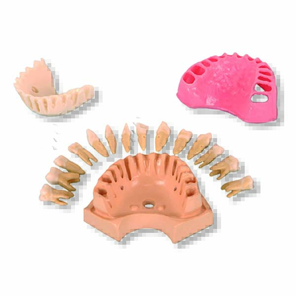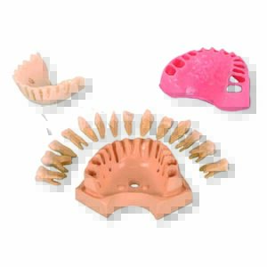 This dental simulation model is engineered for realistic tooth avulsion practice. The highly elastic nature of the polyurethane adapting supports, combined with their configuration into two interlocking half-sections, ensures the teeth are firmly held.