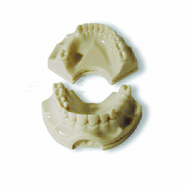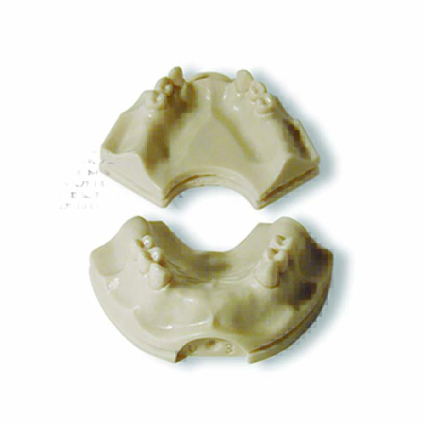 Constructed with a specialized resin resulting in a compact surface layer and a spongy internal structure, thus mimicking natural bone morphology. This is an economical design choice, as the superficial gingival tissue is also integrated and reproduced using the resin material.